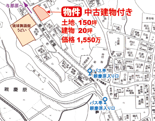 | 売地、向かいに琉球舞踊館うどいがあります。 |