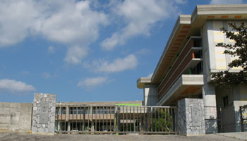 隣接する住宅は、「古民家風」の建物で、崎本部の自然とマッチした風情あるたたずまいです。 |