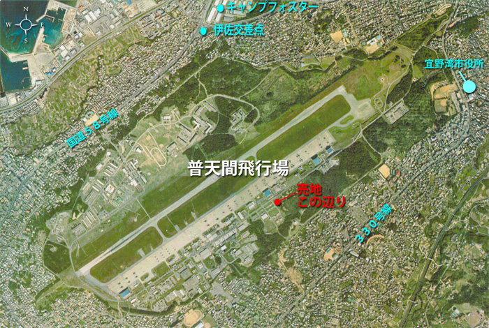 | 売り地の場所は、普天間飛行場の駐機場の近くです。