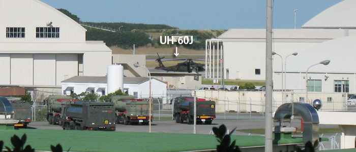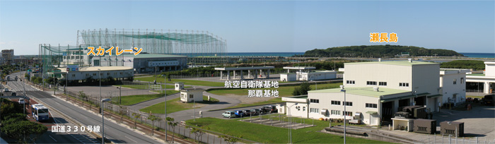 航空自衛隊基地は那覇空港(滑走路南側)に隣接しています。