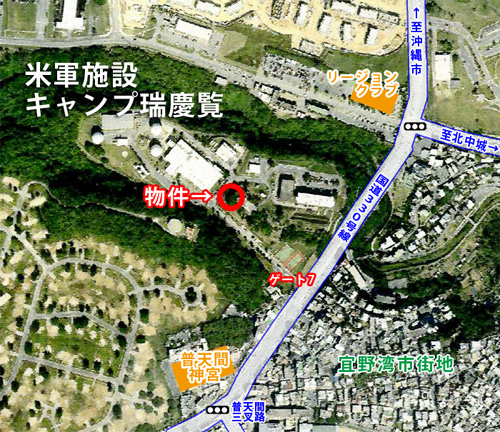 | 「普天間神宮」から北向けに約200mの距離に「ゲート7」があります。 |