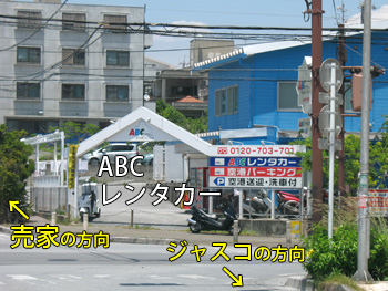 | 曲がり角の目印↑(ABCレンタカー) |