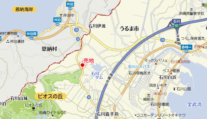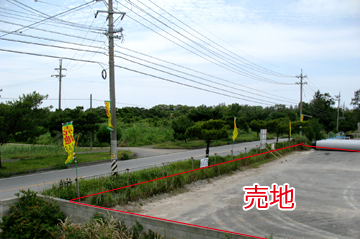 売地は県道6号線沿い。ゴルフ場側のビオスの丘入口近くに位置しております。