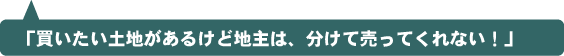 「土地を分筆すると、測量費用など余分な経費が出るし、2回も3回も売買しないといけないので、非常にわずらわしい。買うなら土地全部を買ってくれッ!」